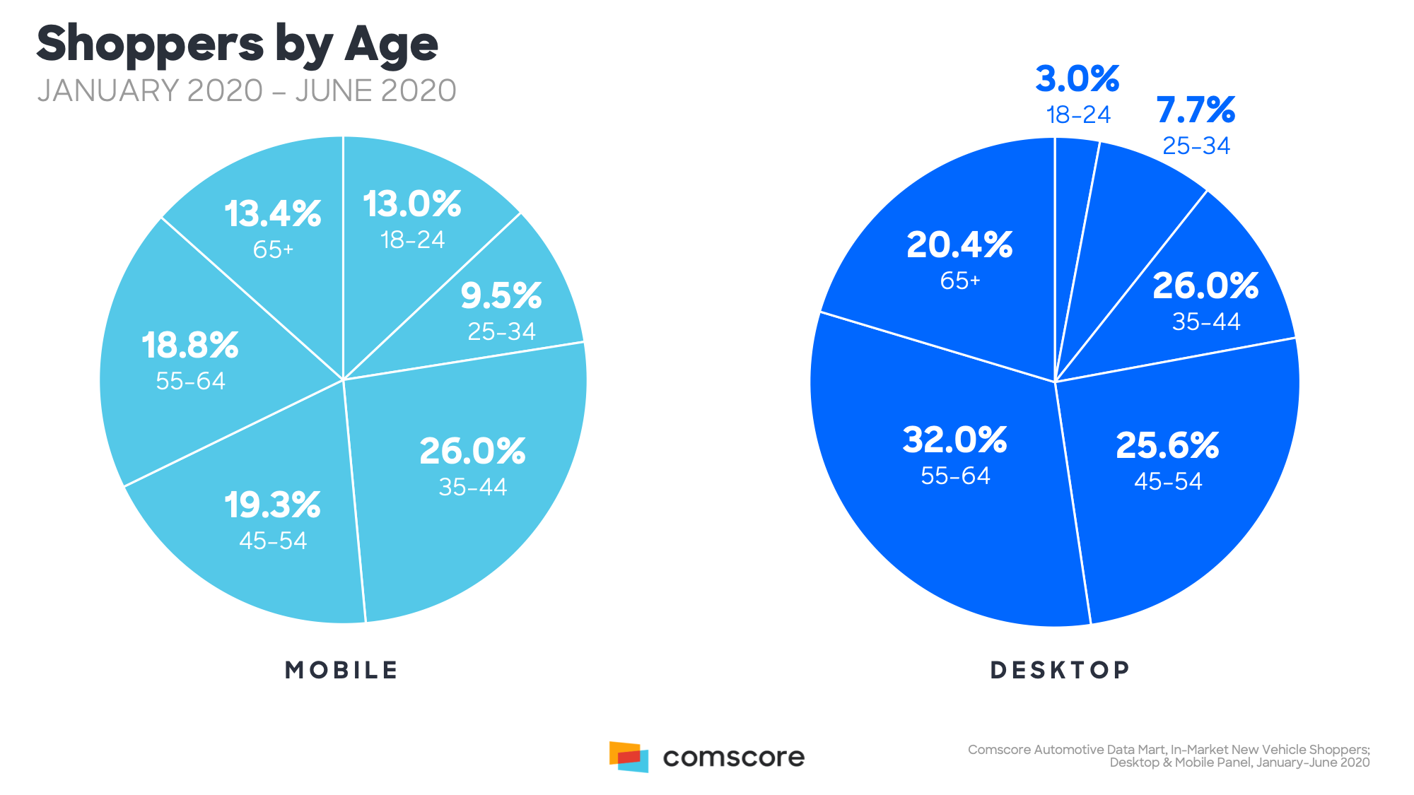 Comscore tracks new vehicle shopper data via a proprietary database that examines online shopping behavior based on engagement with key lower funnel shopping activity on third-party automotive shopping sites, such as Edmunds, KBB, CarGurus, and Cars.com, among others, on both desktop and mobile devices.