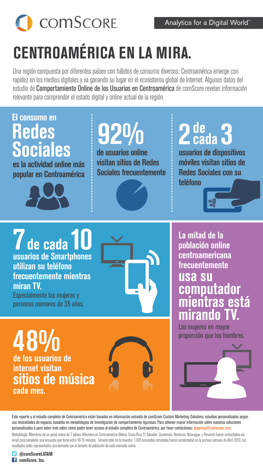Comscore recientemente ha lanzado al mercado el estudio sobre el Comportamiento Online de los Centroamericanos. Este estudio contiene información actual sobre el estado de la industria en la región, con datos que demuestran su importancia y nos ayudan a distinguir las tendencias fundamentales para orientar correctamente las tácticas de nuestro negocio digital.
